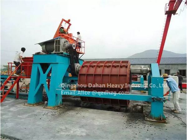 This machine uses the Roller to support the concrete pipe mould, and produce the roller force to concrete in the mould. When the roller rotate at a high speed, the concrete in the mould will spread in the inner wall of the pipe mould and form a cement pipe with the centrifugal force, and when the mould with the inner concrete pass on the roller, the concrete between the mould and the roller will be compacted solid to form a pipe.